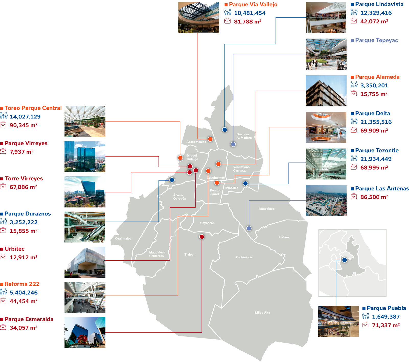 ■ PORTAFOLIO COMERCIAL ■ USOS MIXTOS ■ PORTAFOLIO OFICINAS ■ PROPIEDADES EN DESARROLLO