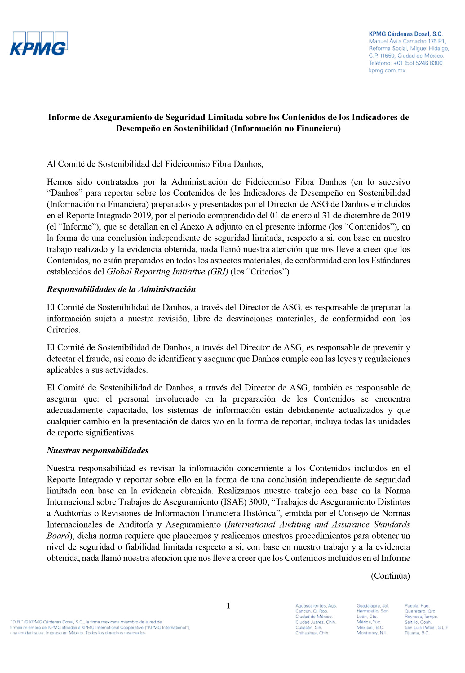 Con este primer Informe Anual Integrado, que comprende el periodo del 1 de enero al 31 de diciembre de 2019, invitamos a todos nuestros grupos de interés a conocer el desempeño de Grupo Danhos como empresa socialmente responsable en los temas económico, ambiental, social y de gobierno corporativo.