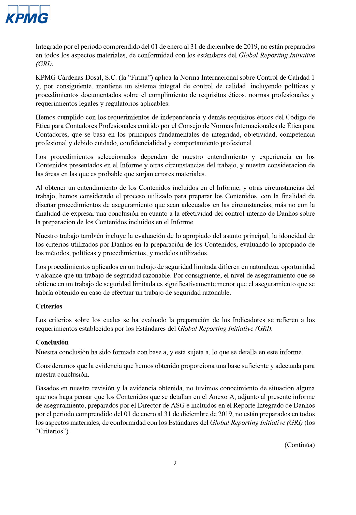 Previamente a este informe, que ha sido verificado por KPMG, en 2018 presentamos tanto un Informe Anual como un Informe de Sostenibilidad. Este último se realizó de acuerdo con los principios de contenido y calidad establecidos por la Global Reporting Initiative (GRI), conforme a los estándares GRI (2016–2018), opción esencial, y tiene una periodicidad anual.