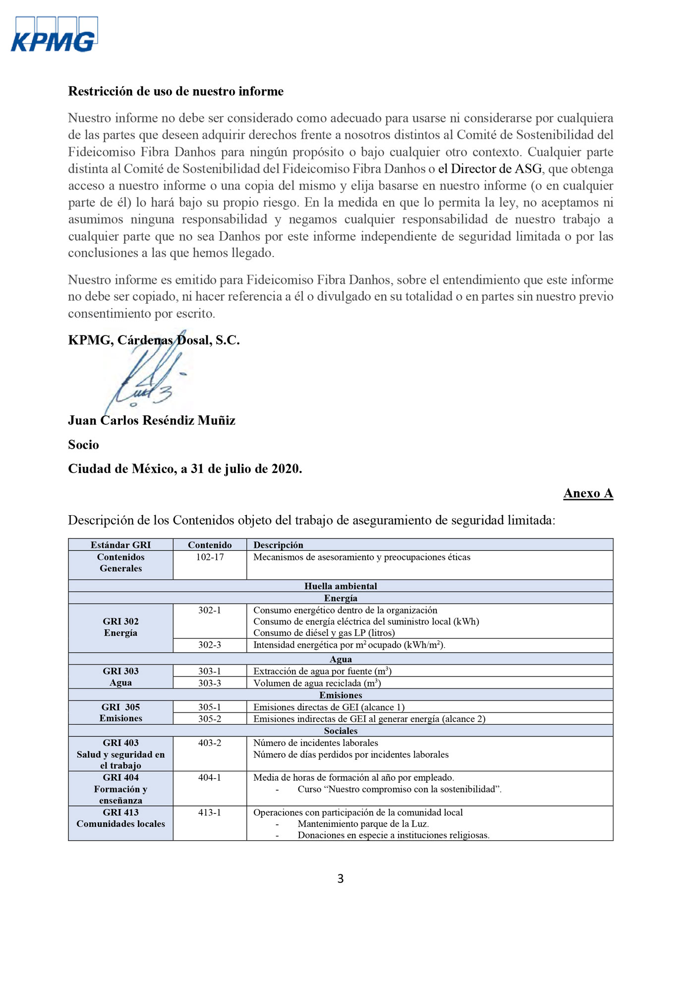 | 403-3 | Trabajadores con alta incidencia o alto riesgo de enfermedades relacionadas con su actividad | No existen riesgos de emfermedades relacionadas con las actividades de FD. Sin embargo, en todos los inmuebles ofrecemos servicio de paramédicos, y a los empleados programas de salud y nutrición |