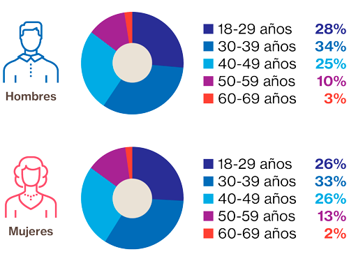 Diferencia en porcentajes: Mujeres +3% |