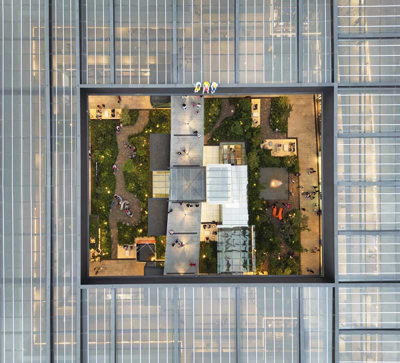 Garantizar altos niveles de calidad del aire interior en nuestros inmuebles es fundamental, y lo logramos con diversas estrategias que incluyen el cumplimiento de elevados estándares como los de ASHRAE (American Society of Heating, Refrigerating and Air-Conditioning Engineers), que especifican el número de cambios de aire y la calidad requerida en espacios de oficinas. También contamos con estrategias activas y pasivas de diseño, tales como integrar jardines y espacios al aire libre, que fomenten la circulación de aire fresco.