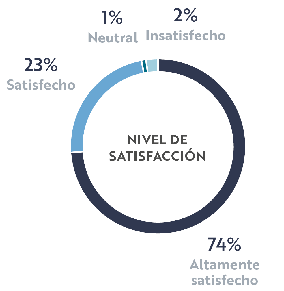 Durante el año realizamos 1,749 encuestas a inquilinos y visitantes para medir su satisfacción en relación con su experiencia en los inmuebles. Como primer tema, quisimos conocer su nivel de satisfacción general, para después puntualizar cuáles fueron los aspectos que valoraron como más o menos importantes y así poder poner especial atención en ellos.